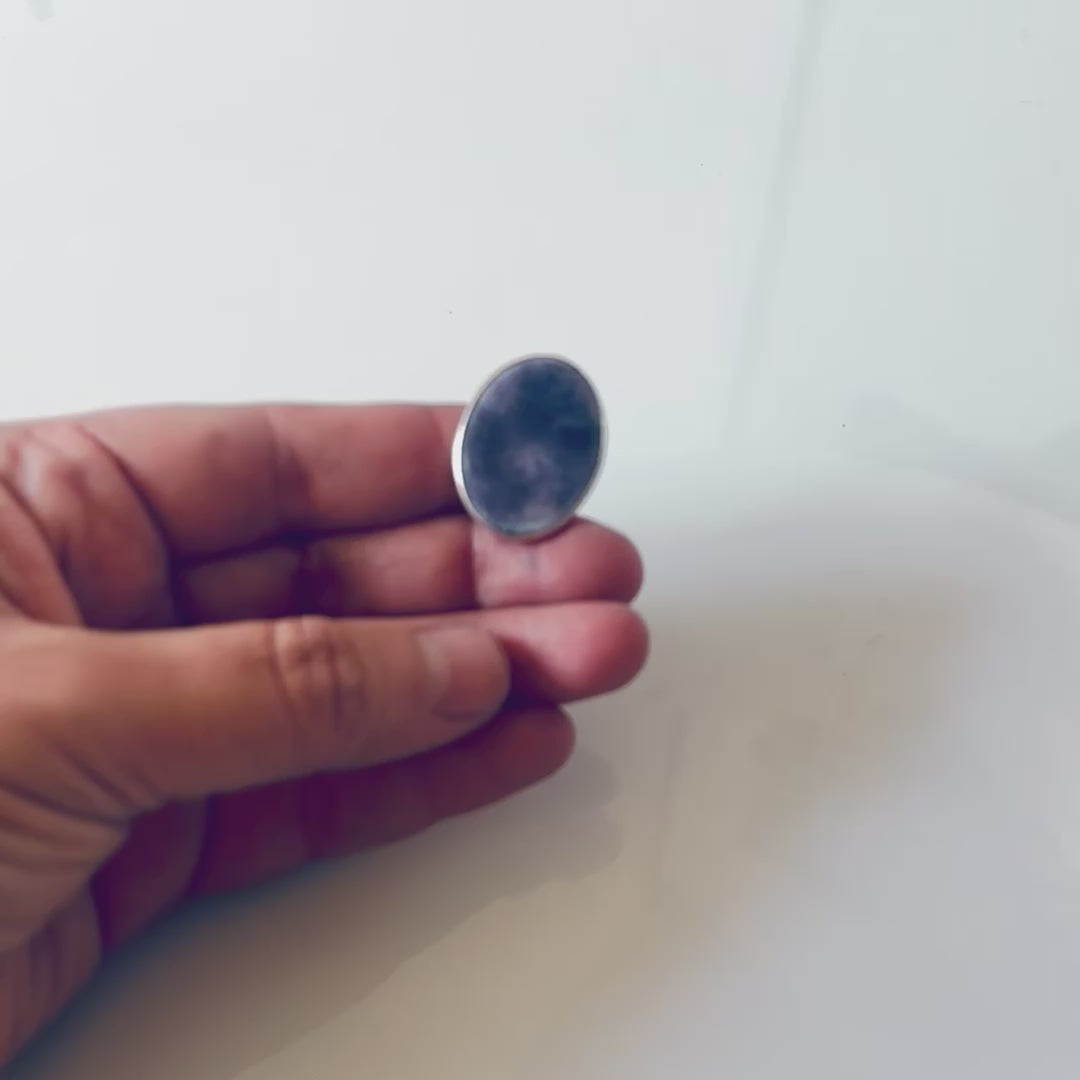 Anillo en Plata .950 que engarza una pieza de esmalte . El esmalte es una textura de asteroide . Son de esos accidentes afortunados que salen solamente una vez . Es una pieza única .