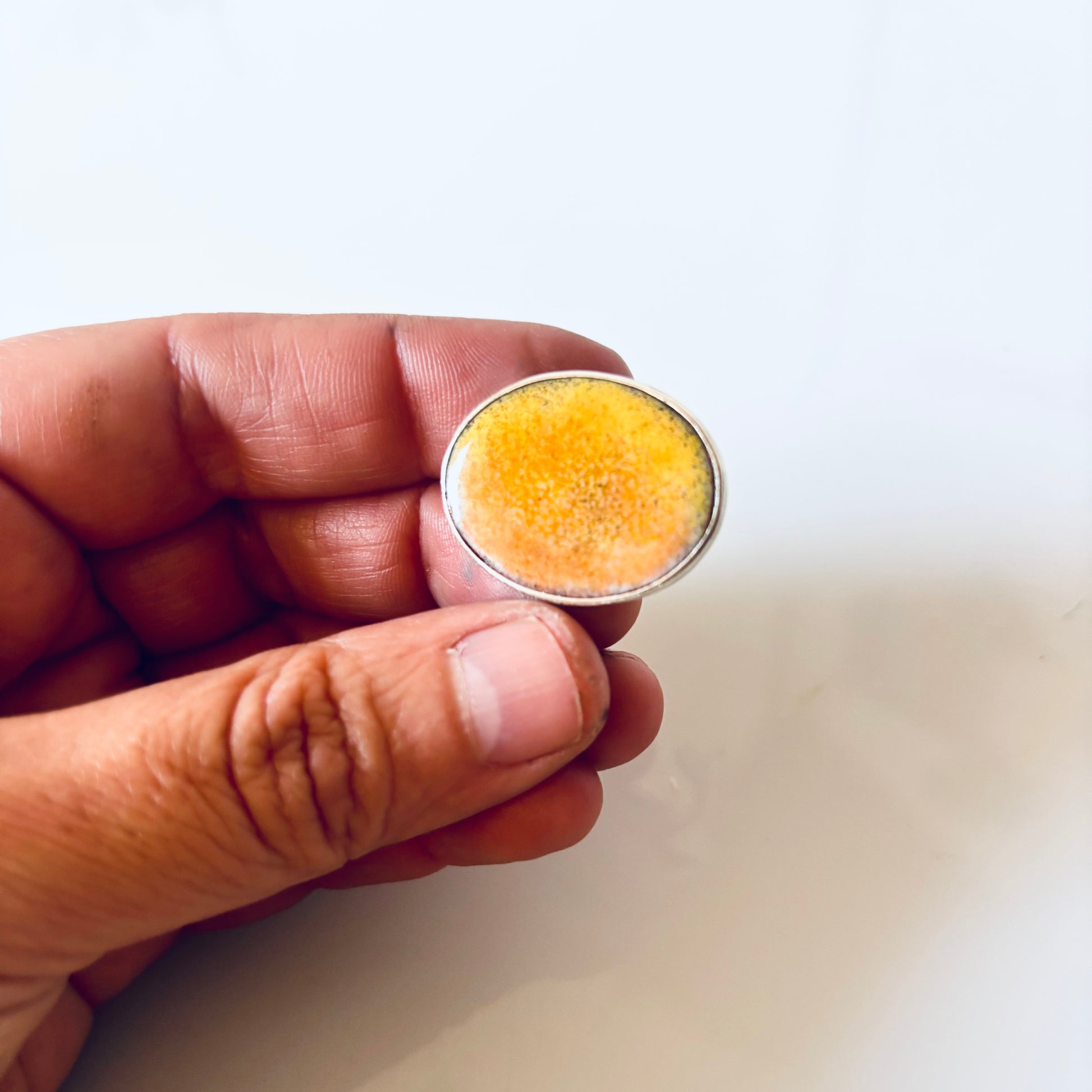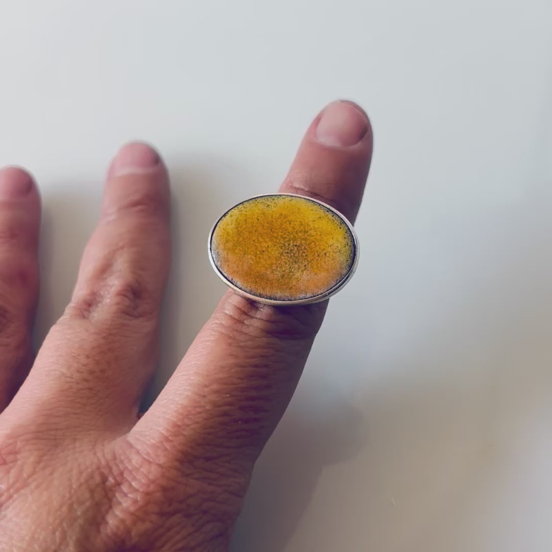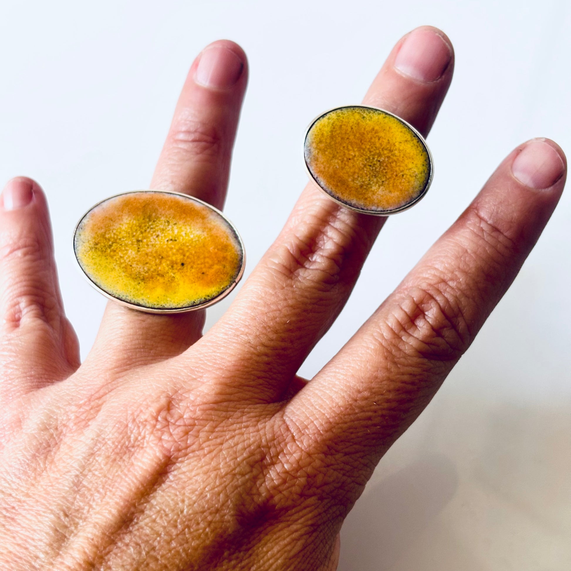 Anillo en Plata .950 que engarza una pieza de esmalte . El esmalte es una textura de asteroide . Son de esos accidentes afortunados que salen solamente una vez . Es una pieza única .