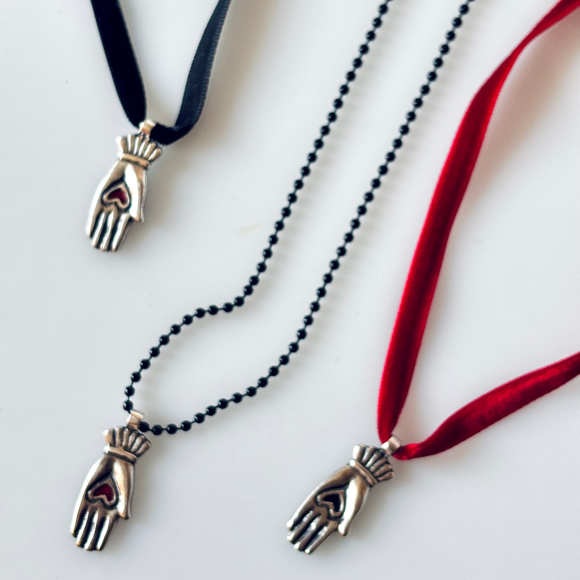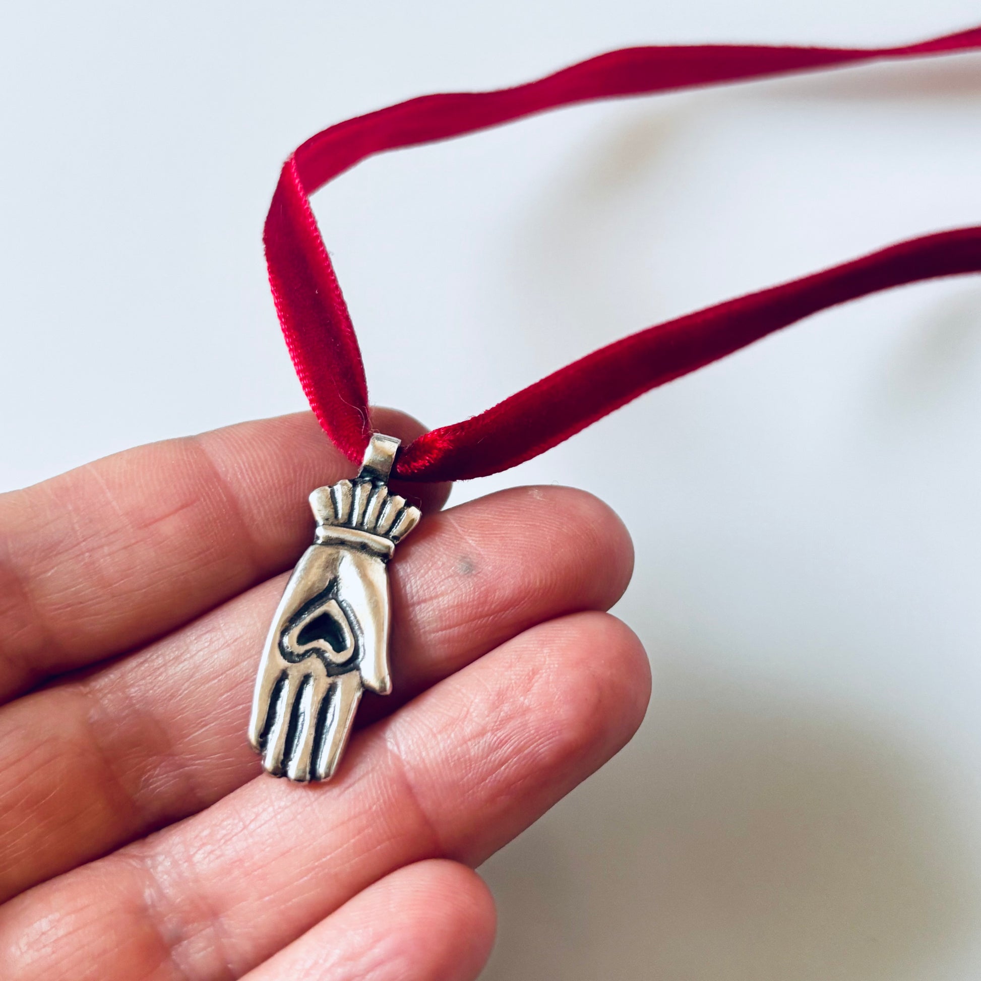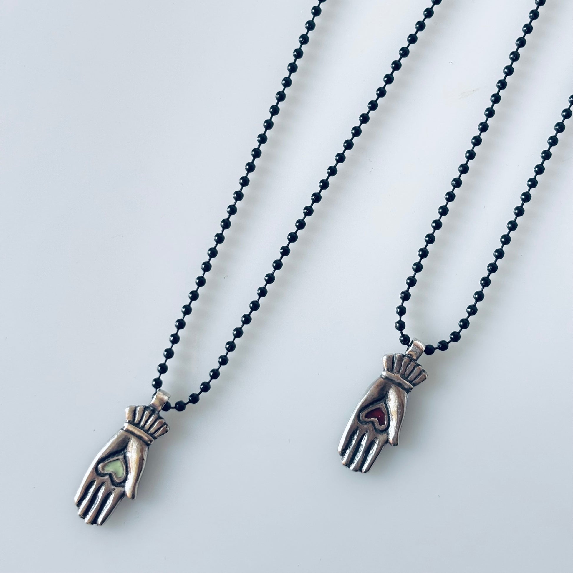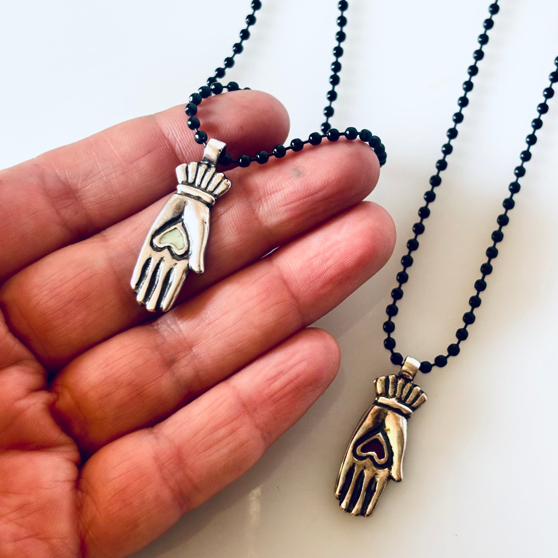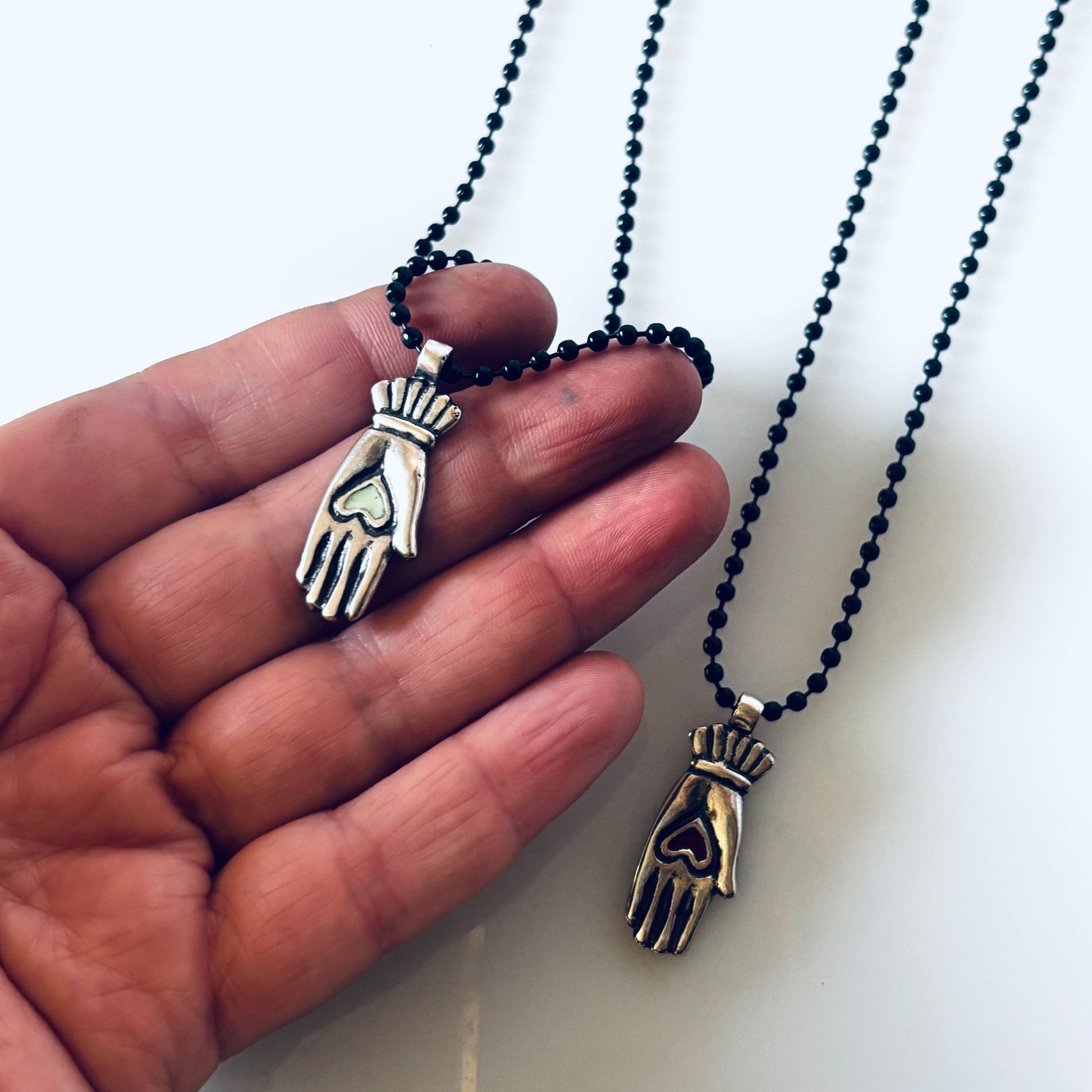 Pieza de plata con esmalte al fuego. Está montado en un hilo con cuentas de vidrio , el hilo tiene un nudo corredizo para que puedas ajustar el largo . En las terminaciones lleva un molotito de hilo del color que combina con la pieza.